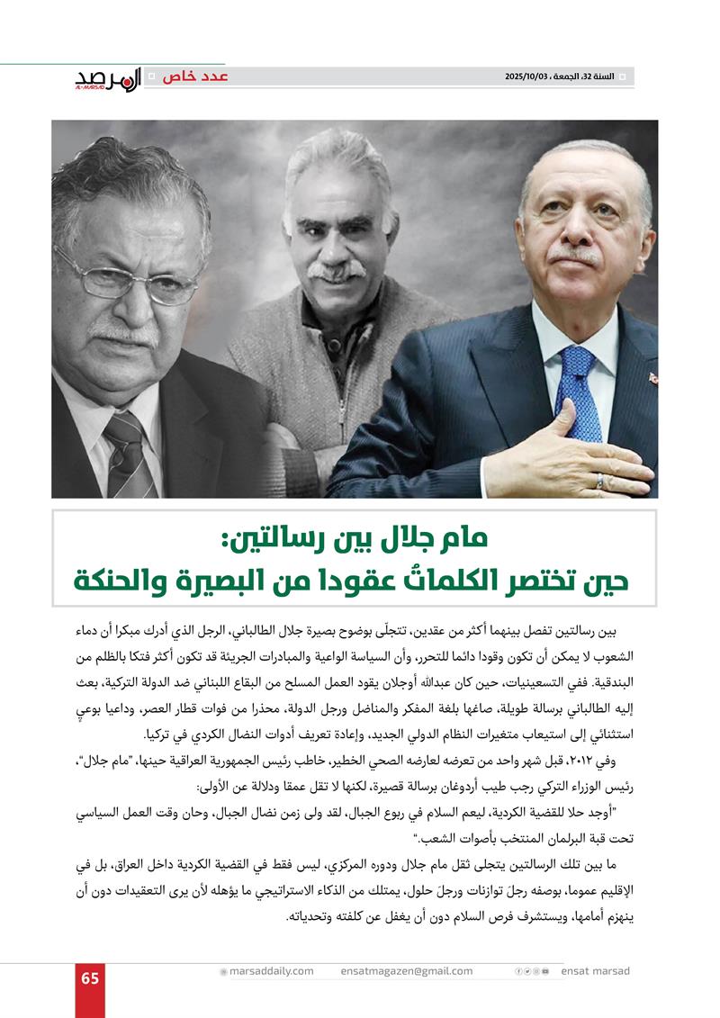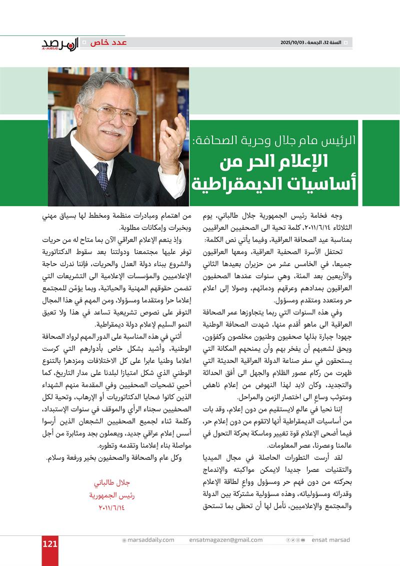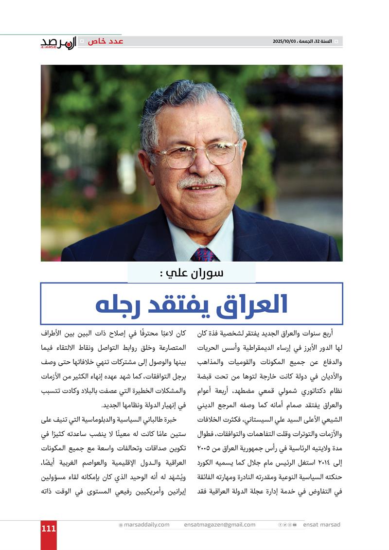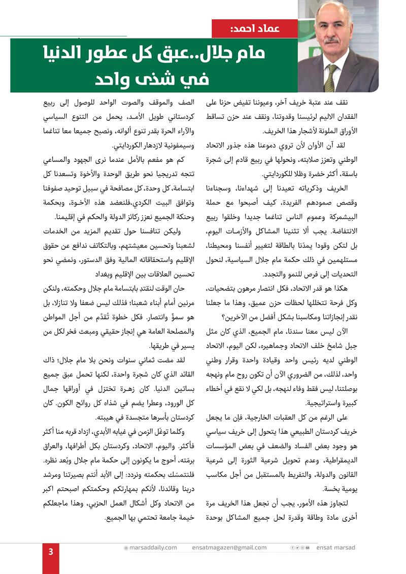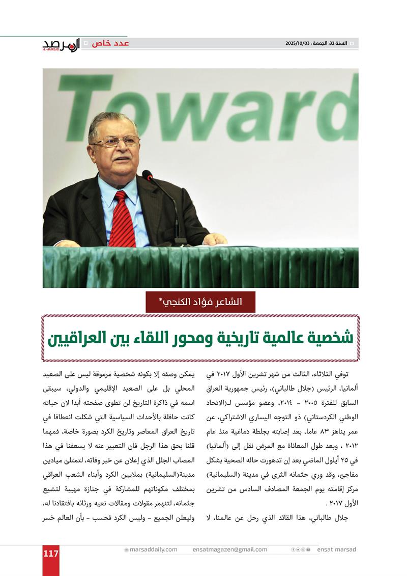 عدد خاص من مجلة المرصد بذكرى رحيل الرئيس مام جلال