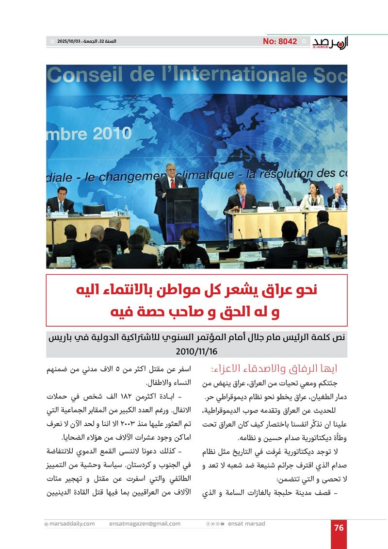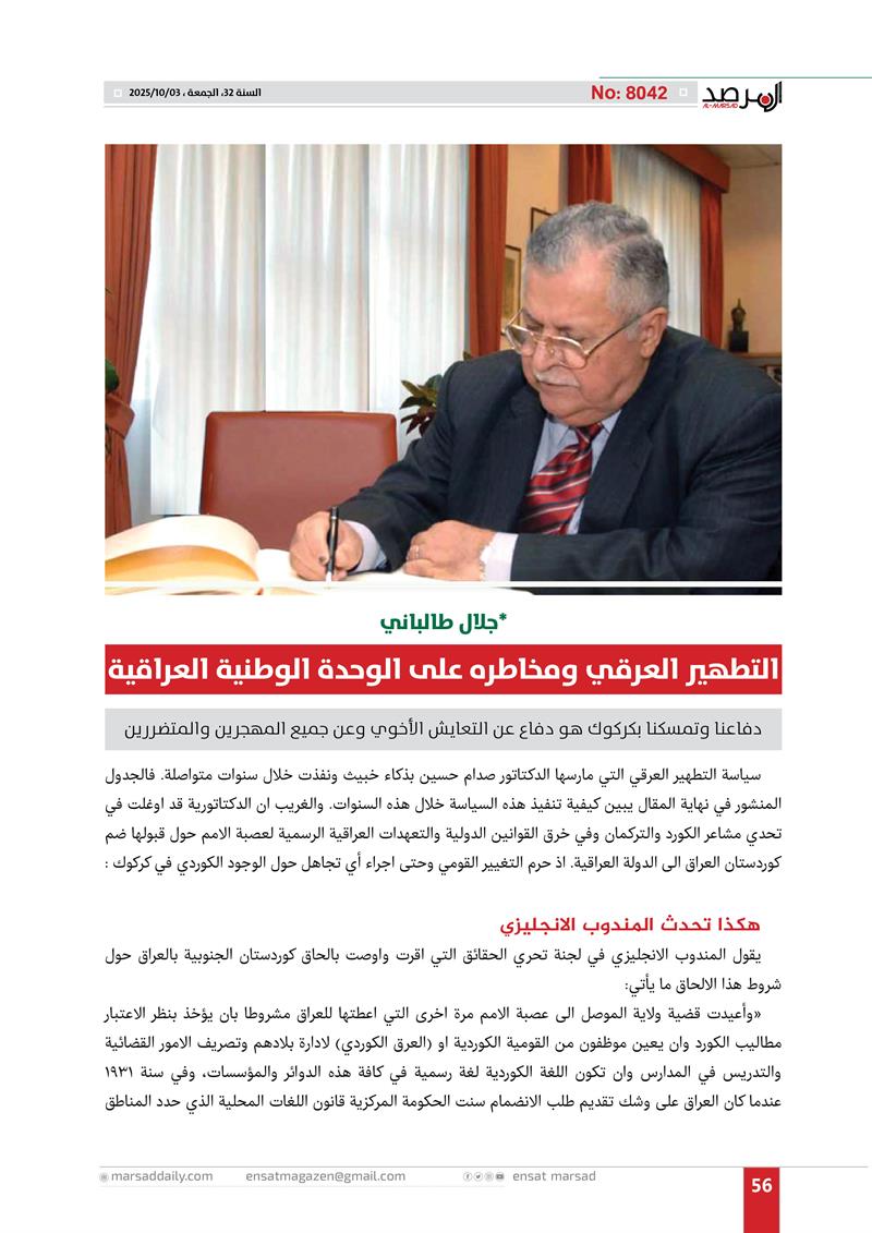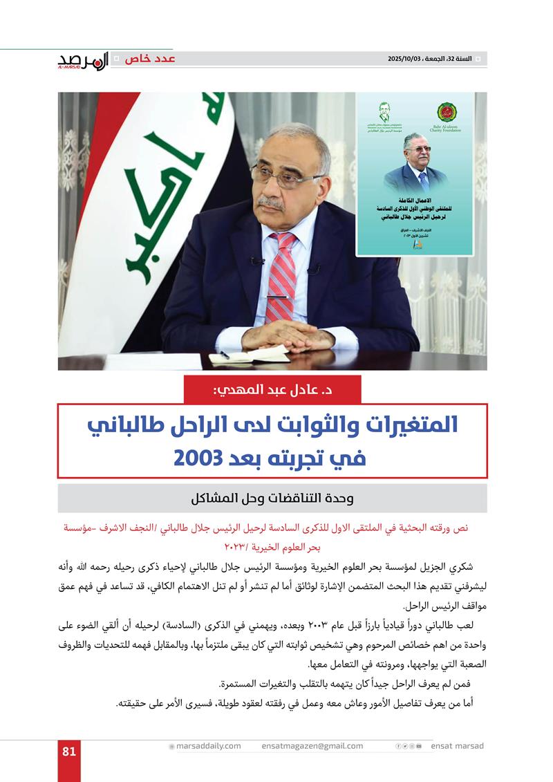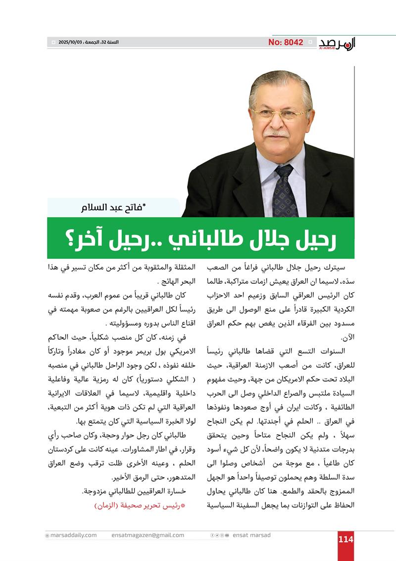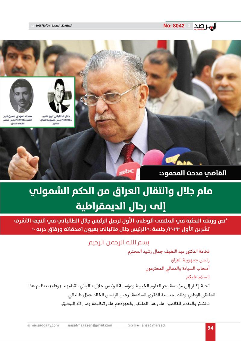 عدد خاص من مجلة المرصد بذكرى رحيل الرئيس مام جلال