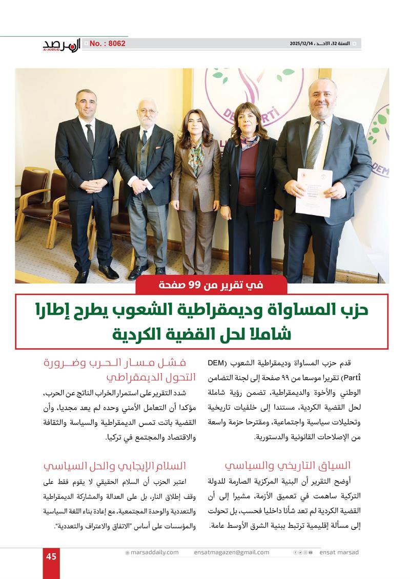 حزب المساواة وديمقراطية الشعوب يطرح إطارا شاملا لحل القضية الكردية