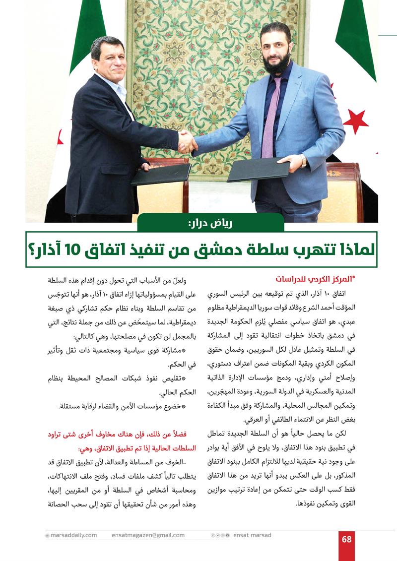 رياض درار: لماذا تتهرب سلطة دمشق من تنفيذ اتفاق 10 آذار؟
