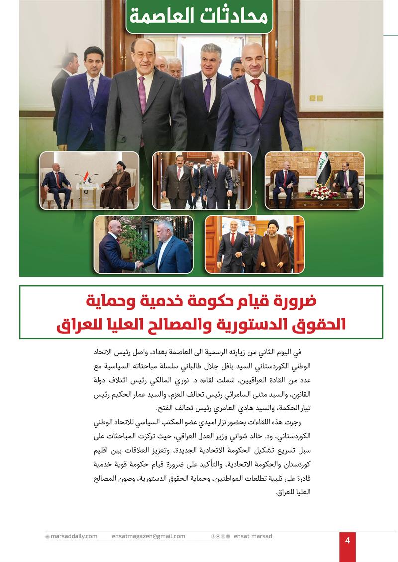 الاتحاد الوطني يجدد التأكيد على تشكيل حكومة خدمية عادلة في بغداد والاقليم