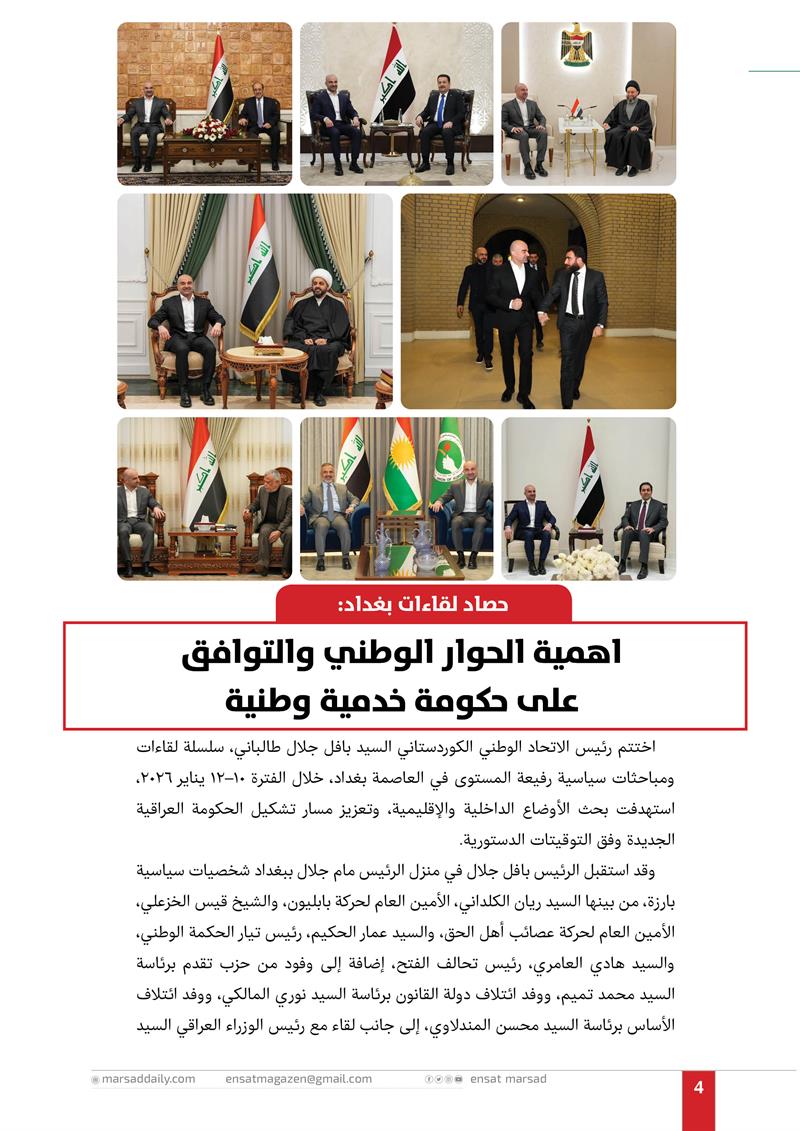 حصاد لقاءات بغداد: اهمية الحوار الوطني والتوافق على حكومة خدمية وطنية
