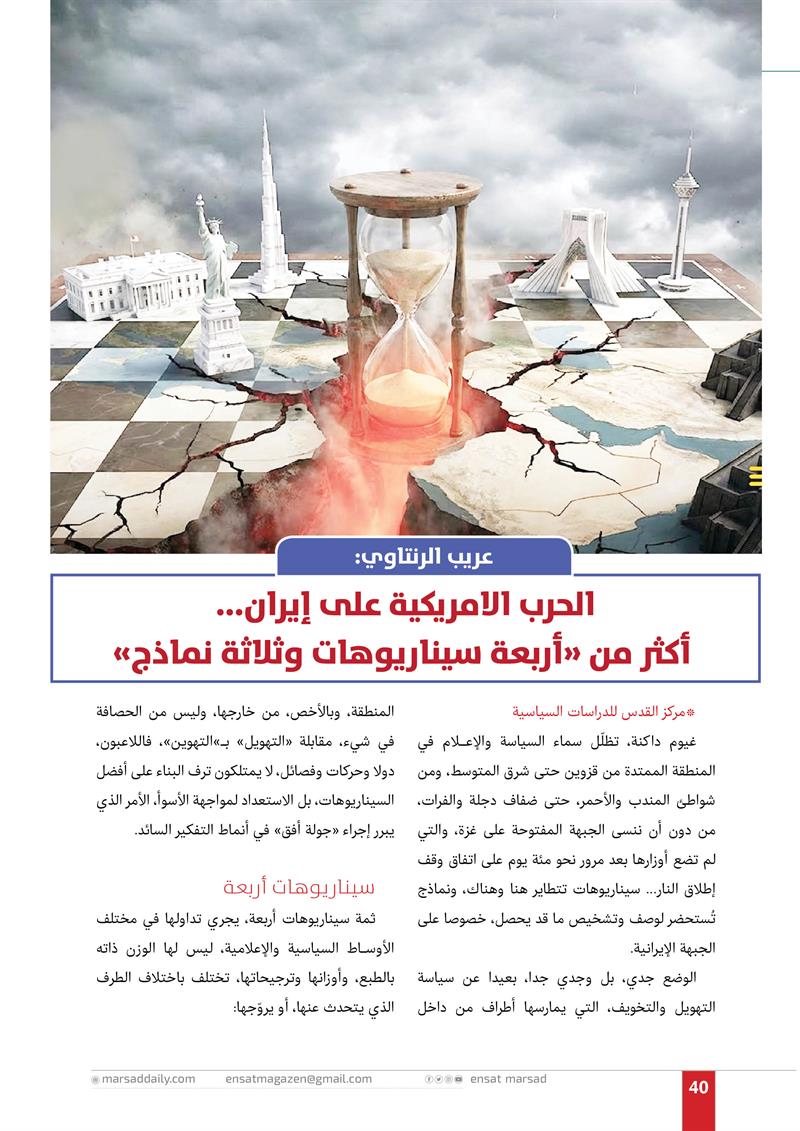 مركز دراسات: الحرب الامريكية على إيران... أكثر من "أربعة سيناريوهات وثلاثة نماذج"