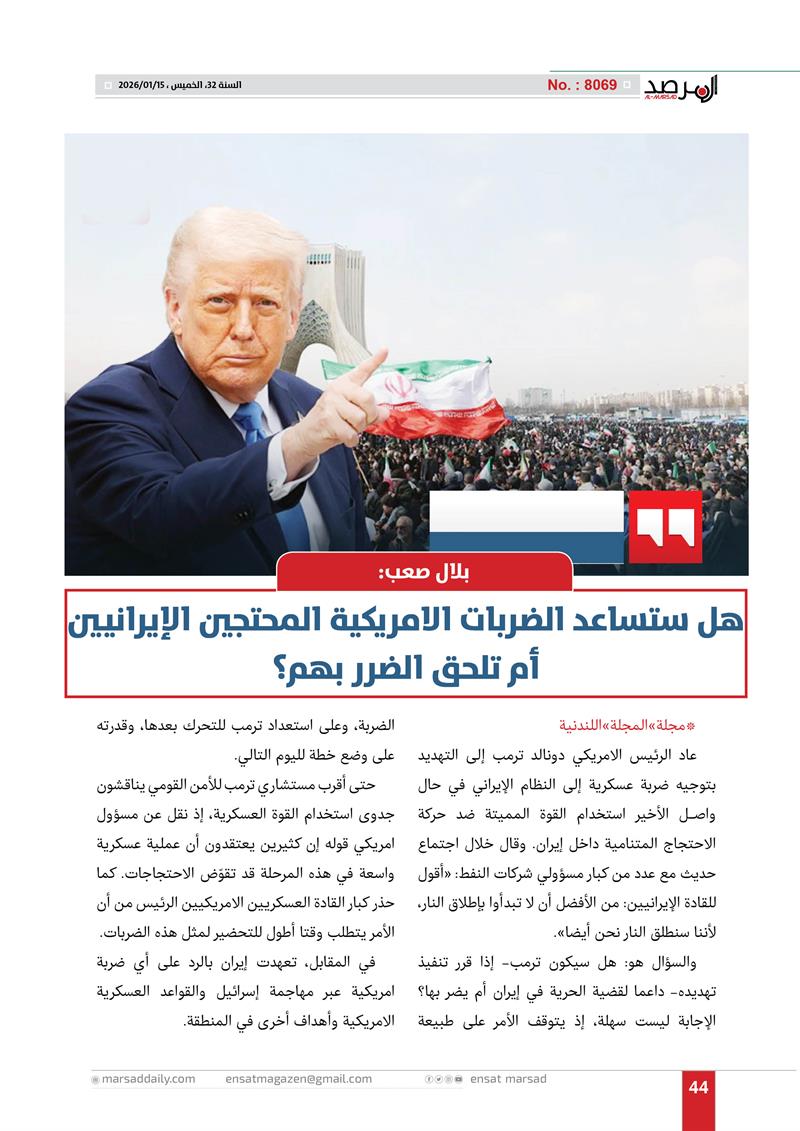 مجلةلندنية:: هل ستساعد الضربات الامريكية المحتجين الإيرانيين أم تلحق الضرر بهم؟
