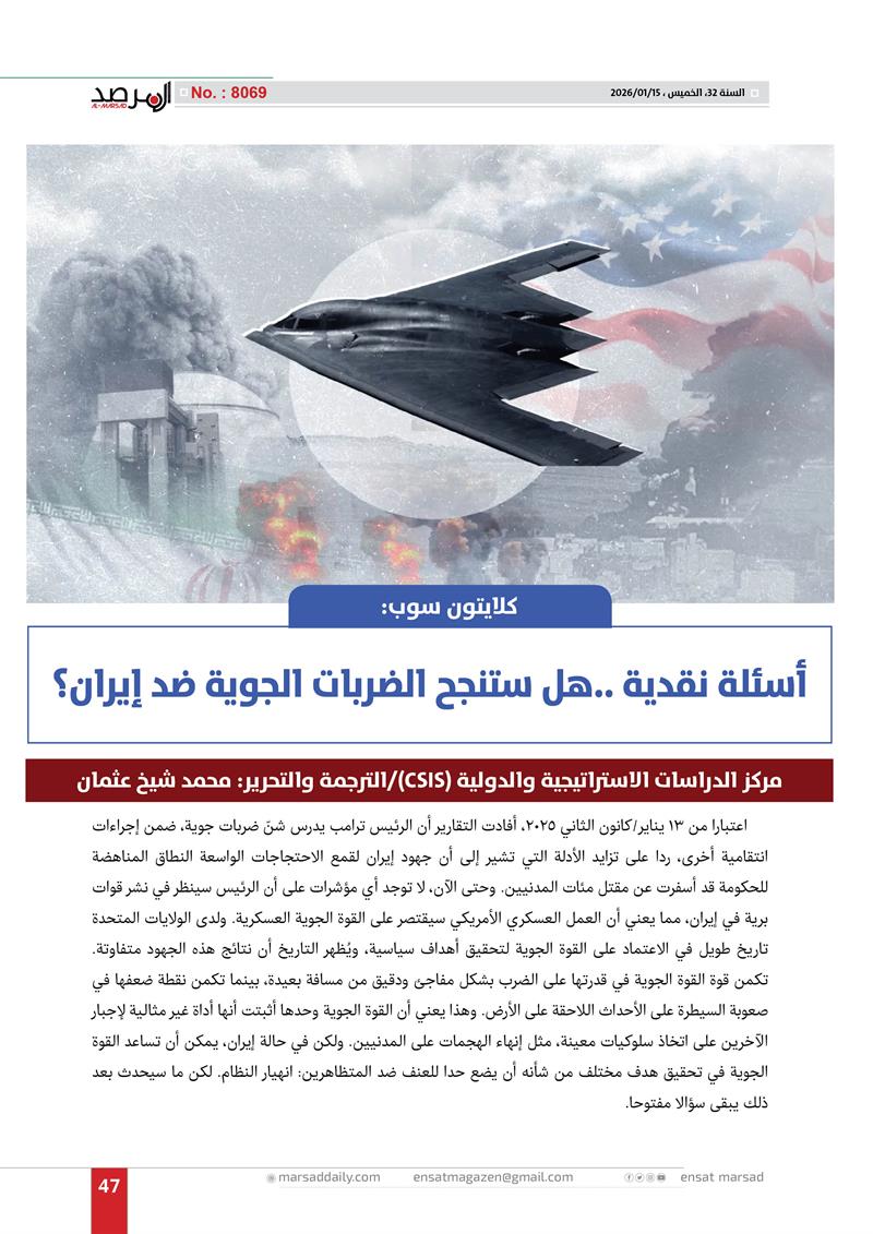 مركز دراسات: أسئلة نقدية ..هل ستنجح الضربات الجوية ضد إيران؟