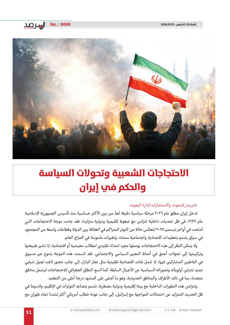 مركز دراسات: الاحتجاجات الشعبية وتحولات السياسة والحكم في إيران
