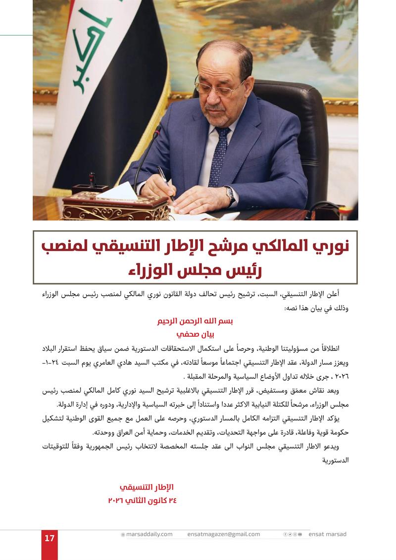 نوري المالكي مرشح الإطار التنسيقي لمنصب رئيس مجلس الوزراء