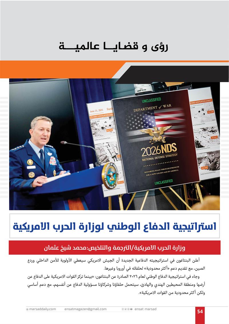 ملخص هام لاستراتيجية الدفاع الوطني لوزارة الحرب الامريكية