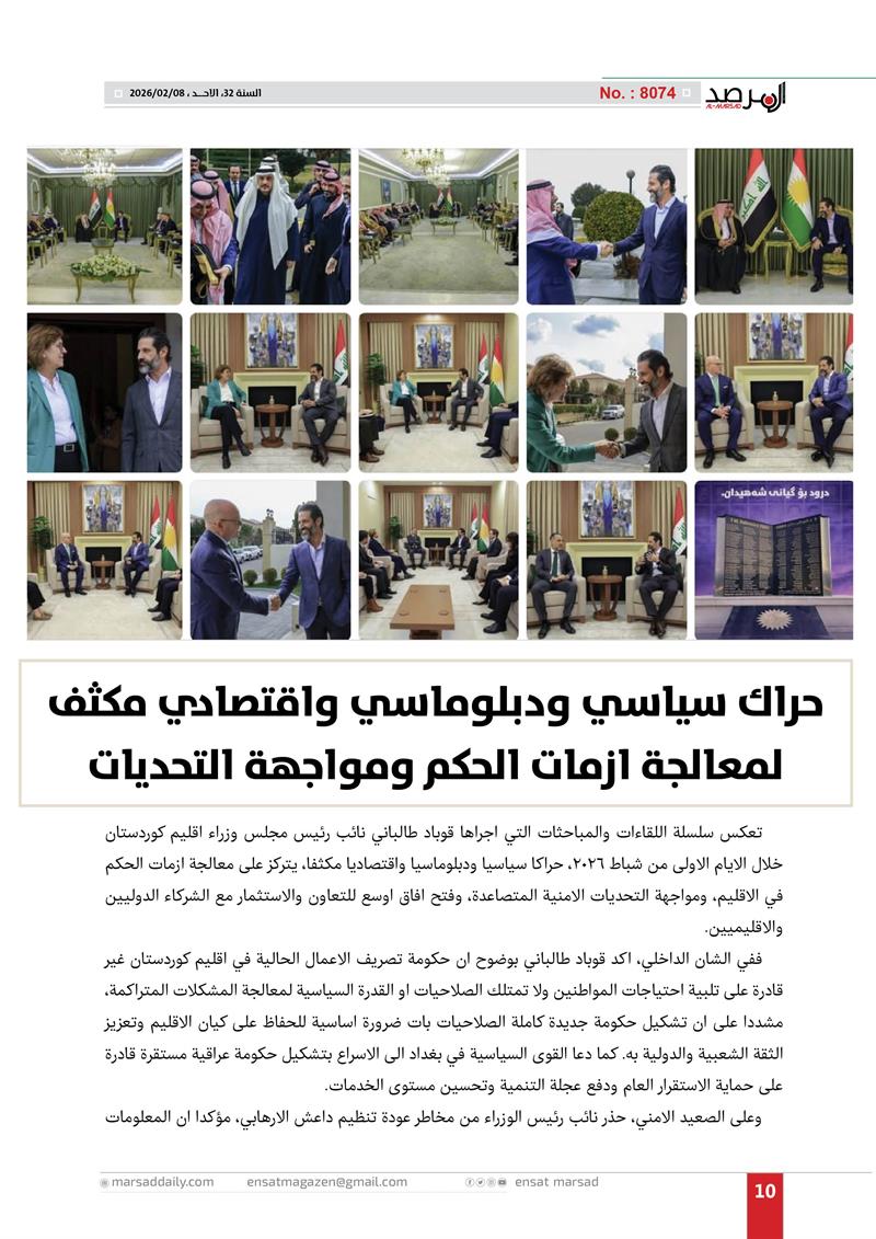 قوباد طالباني..حراك سياسي ودبلوماسي واقتصادي مكثف لمعالجة ازمات الحكم