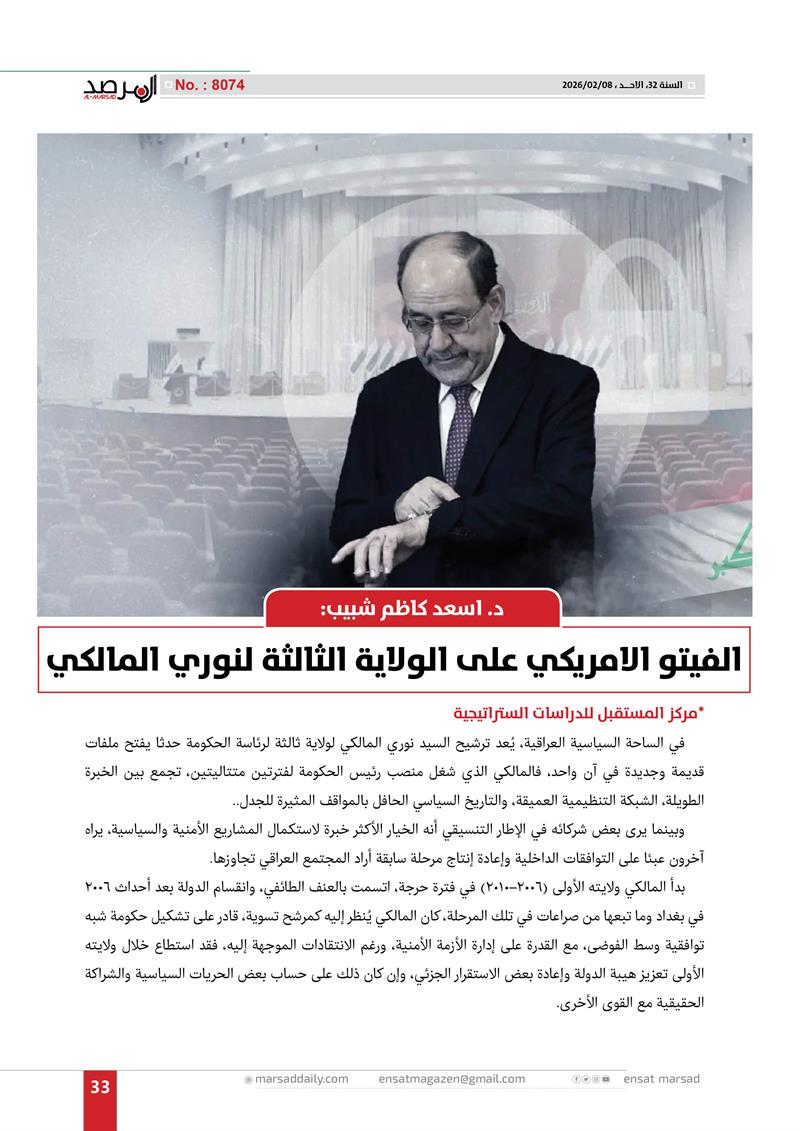 الفيتو الامريكي على الولاية الثالثة لنوري المالكي
