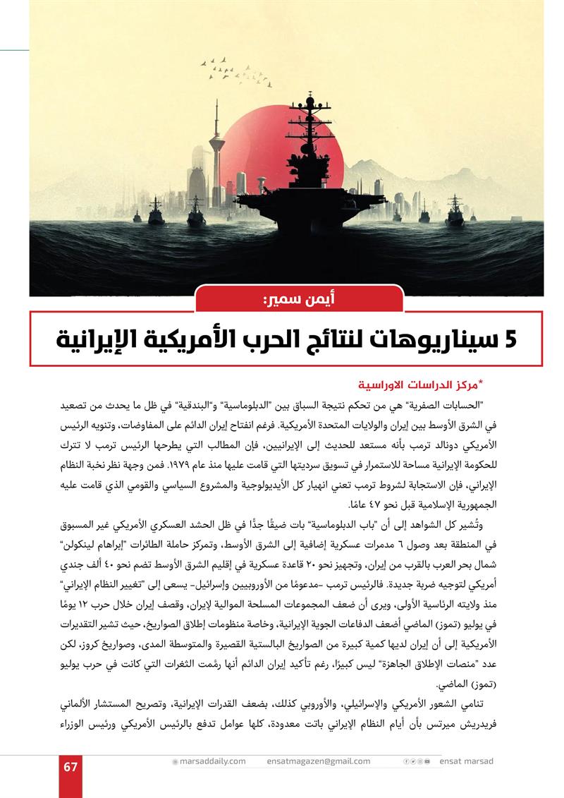 مركز دراسات: 5 سيناريوهات لنتائج الحرب الأمريكية الإيرانية