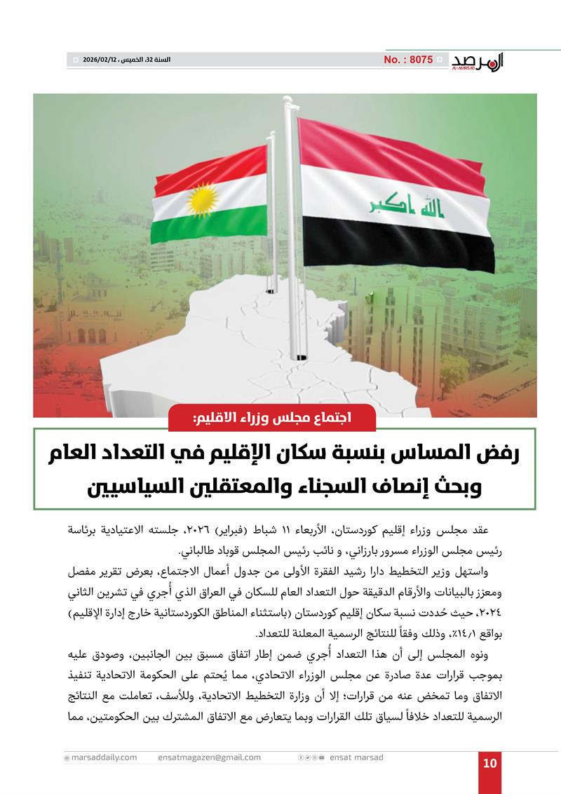 مجلس وزراء الإقليم يرفض المساس بنسبة سكان الاقليم في التعداد العام