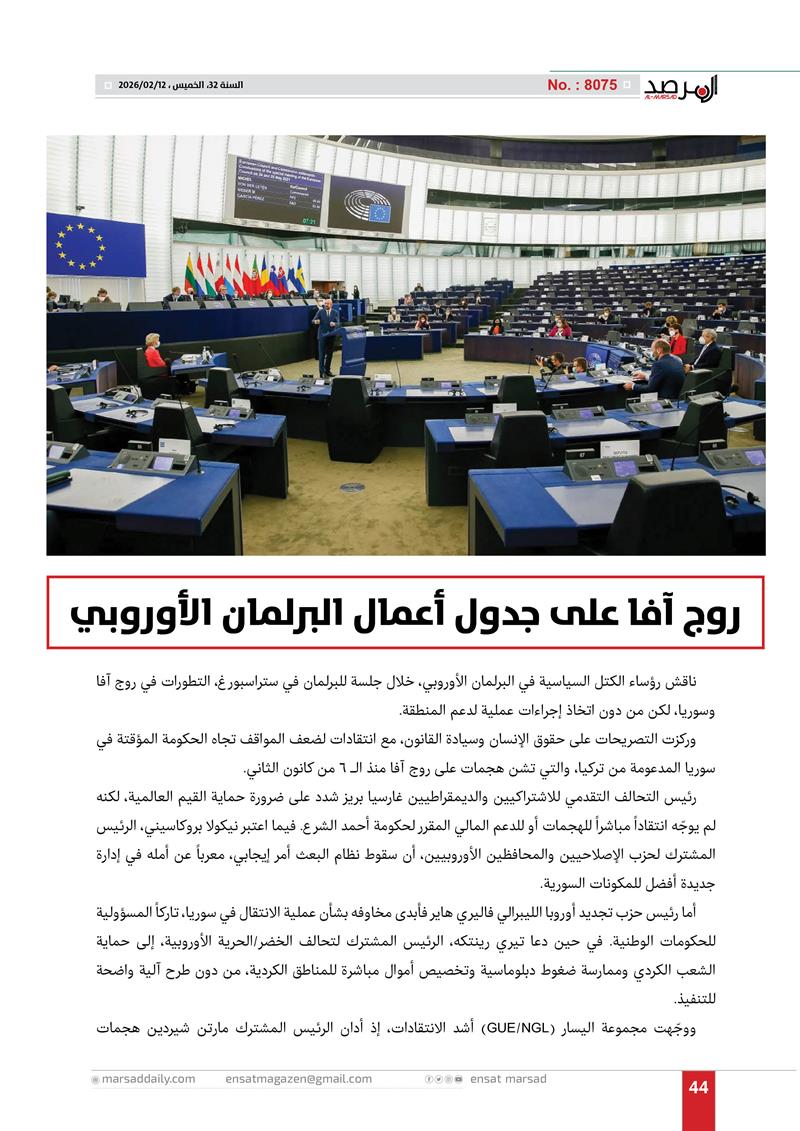 روج آفا على جدول أعمال البرلمان الأوروبي