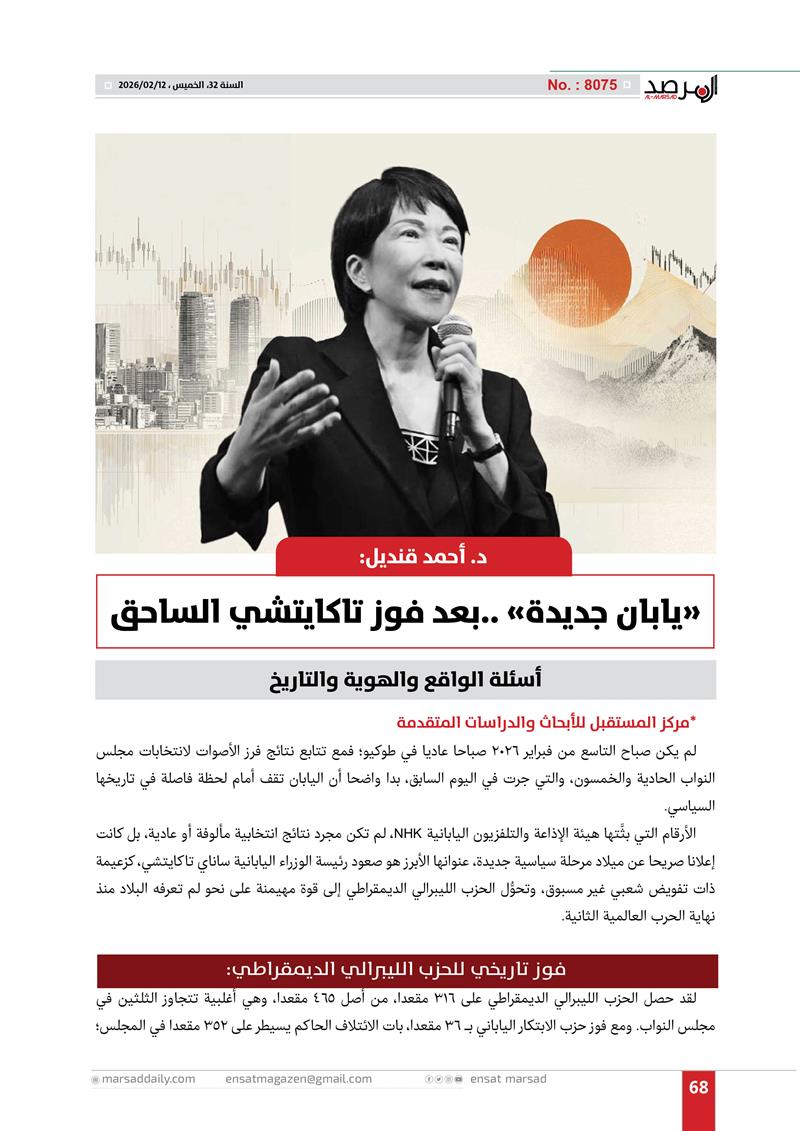 مركز دراسات: "يابان جديدة" ..بعد فوز تاكايتشي الساحق عاصمة