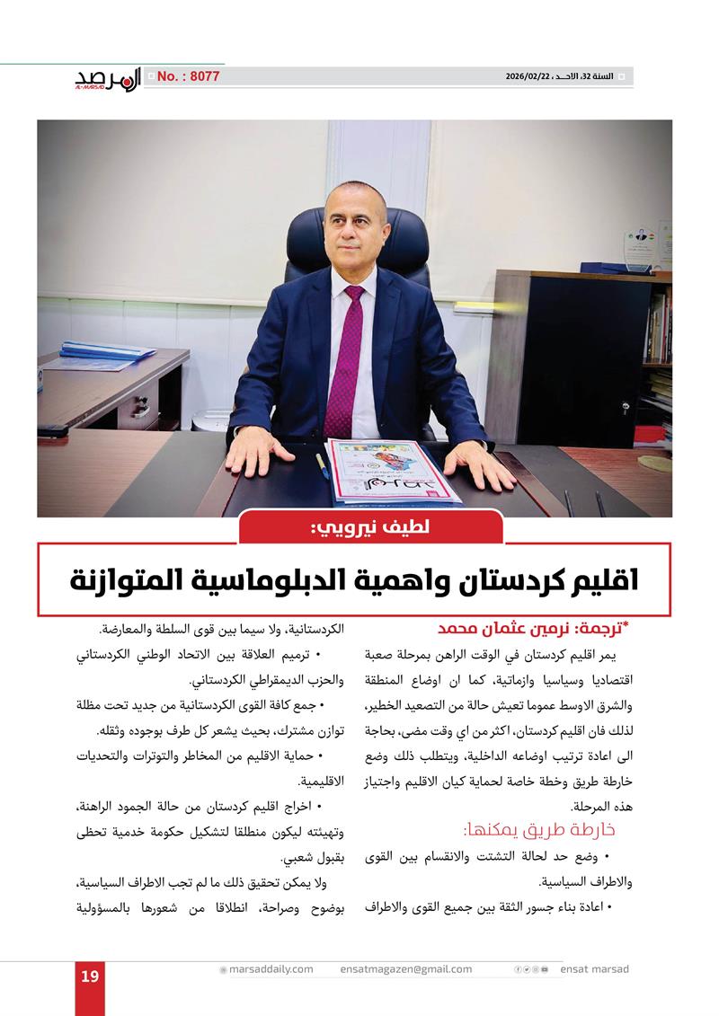 لطيف نيرويي: اقليم كردستان واهمية الدبلوماسية المتوازنة