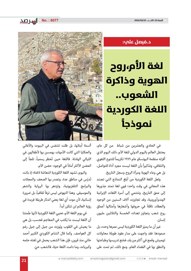 د.فيصل علي: لغة الأم،روح الهوية وذاكرة الشعوب..اللغة الكوردية نموذجاً