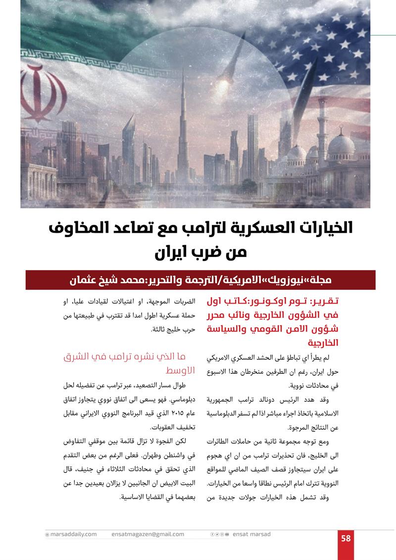 الخيارات العسكرية لترامب مع تصاعد المخاوف من ضرب ايران