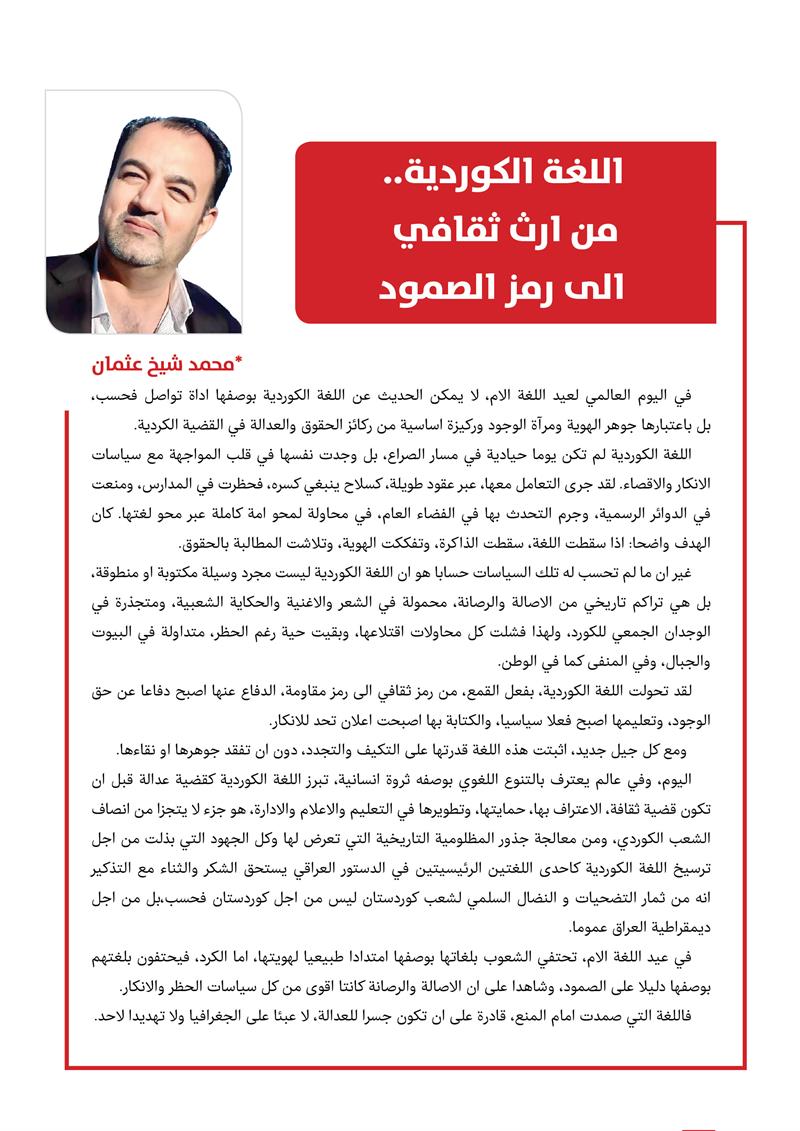 محمد شيخ عثمان: اللغة الكوردية..من ارث ثقافي الى رمز الصمود