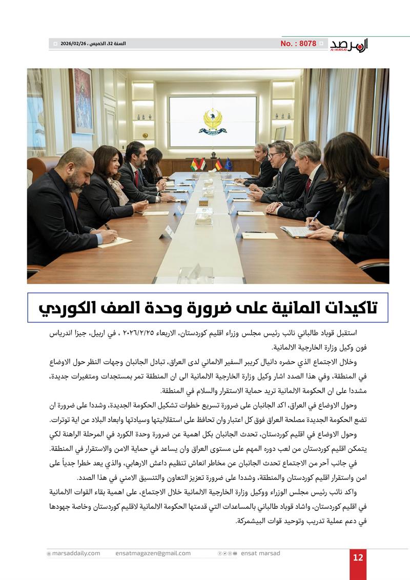 تاكيدات المانية على ضرورة وحدة الصف الكوردي