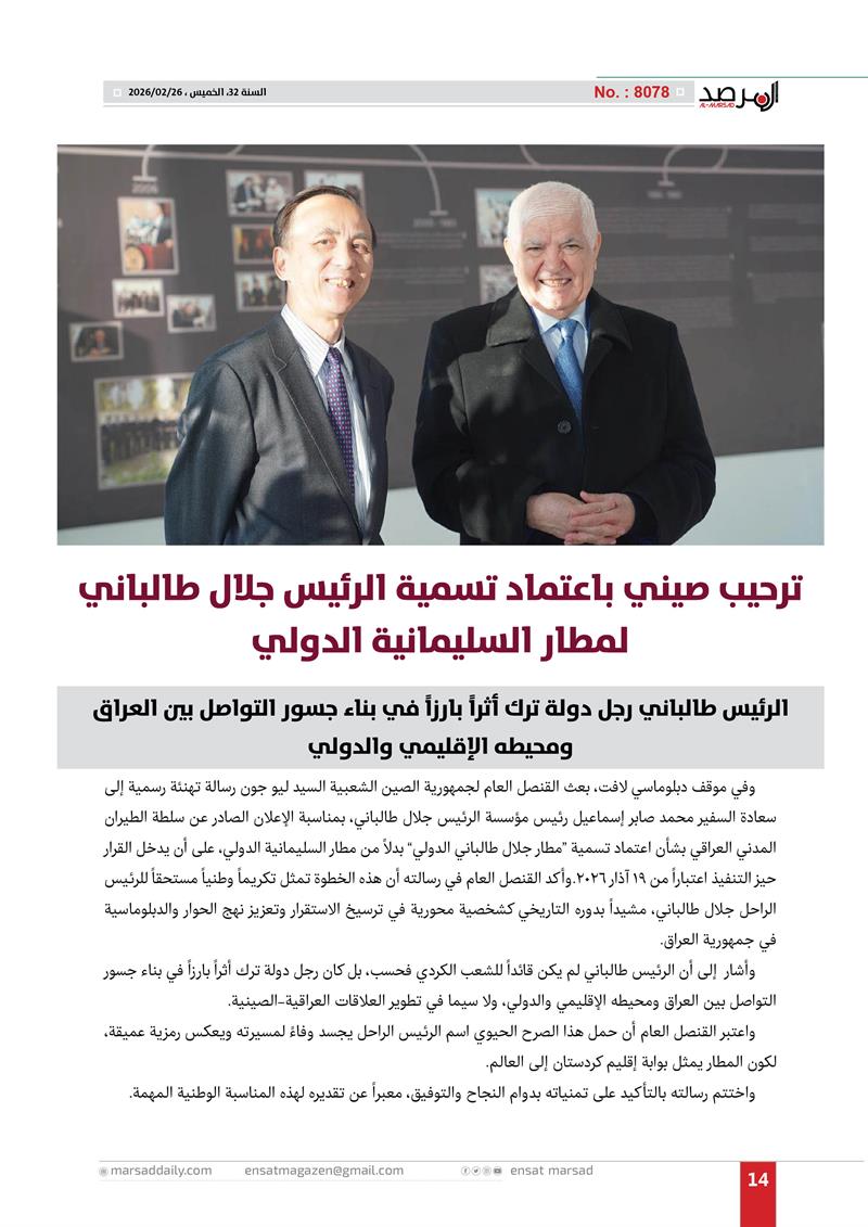 ترحيب صيني باعتماد تسمية الرئيس جلال طالباني لمطار السليمانية الدولي