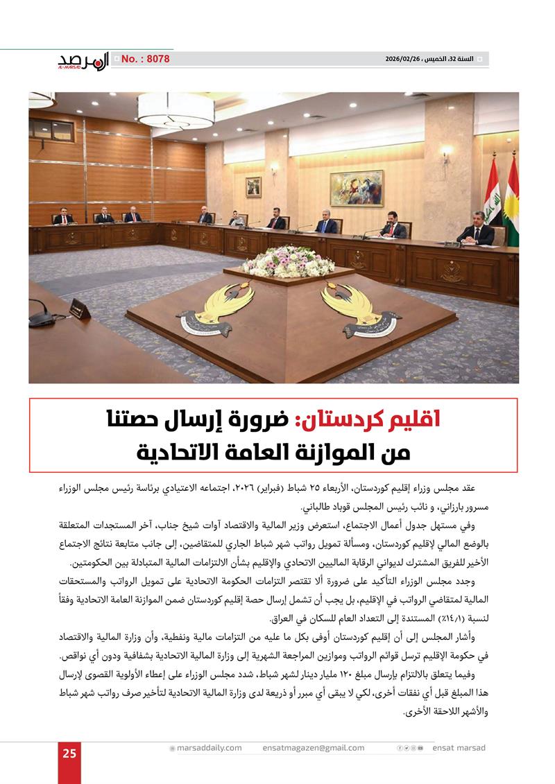 اقليم كردستان: ضرورة إرسال حصتنا من الموازنة العامة الاتحادية