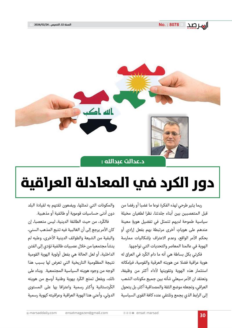 د.عدالت عبدالله : دور الكرد في المعادلة العراقية