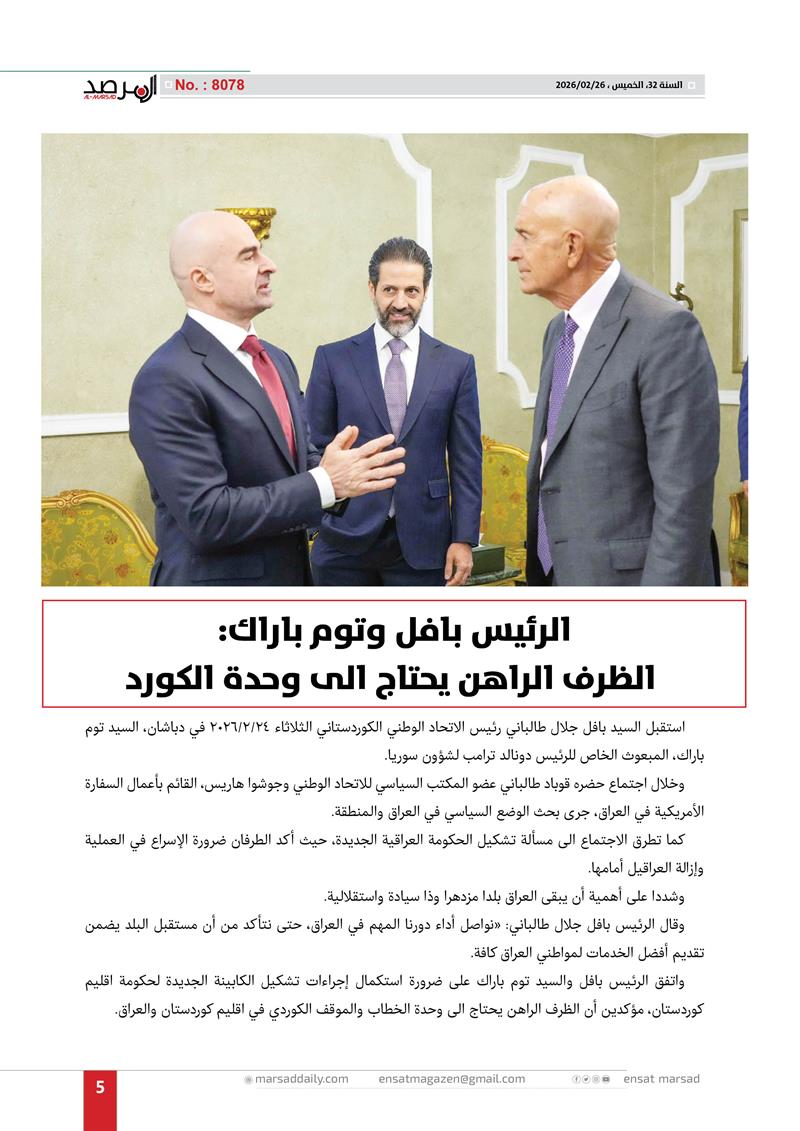 الرئيس بافل وتوم باراك: الظرف الراهن يحتاج الى وحدة الكورد