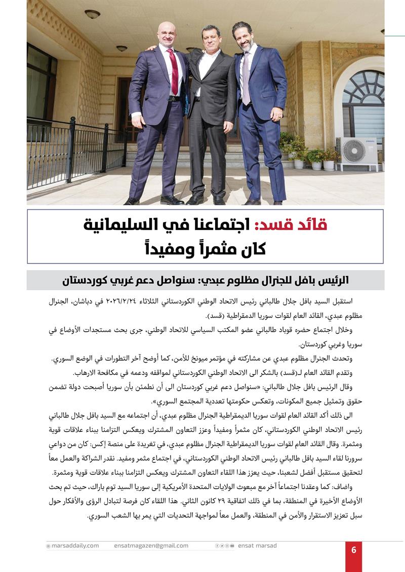 قائد قسد: اجتماعنا في السليمانية كان مثمراً ومفيداً