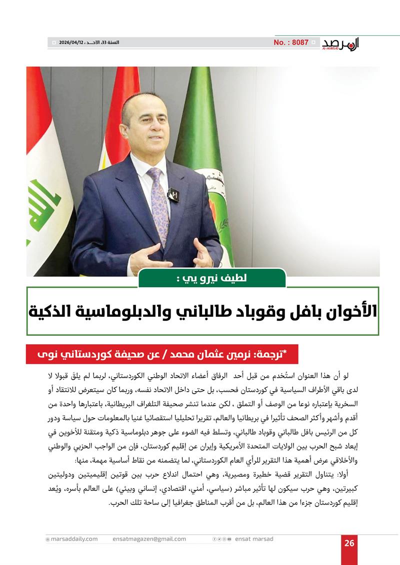لطيف نيرو يي : الأخوان بافل وقوباد طالباني والدبلوماسية الذكية
