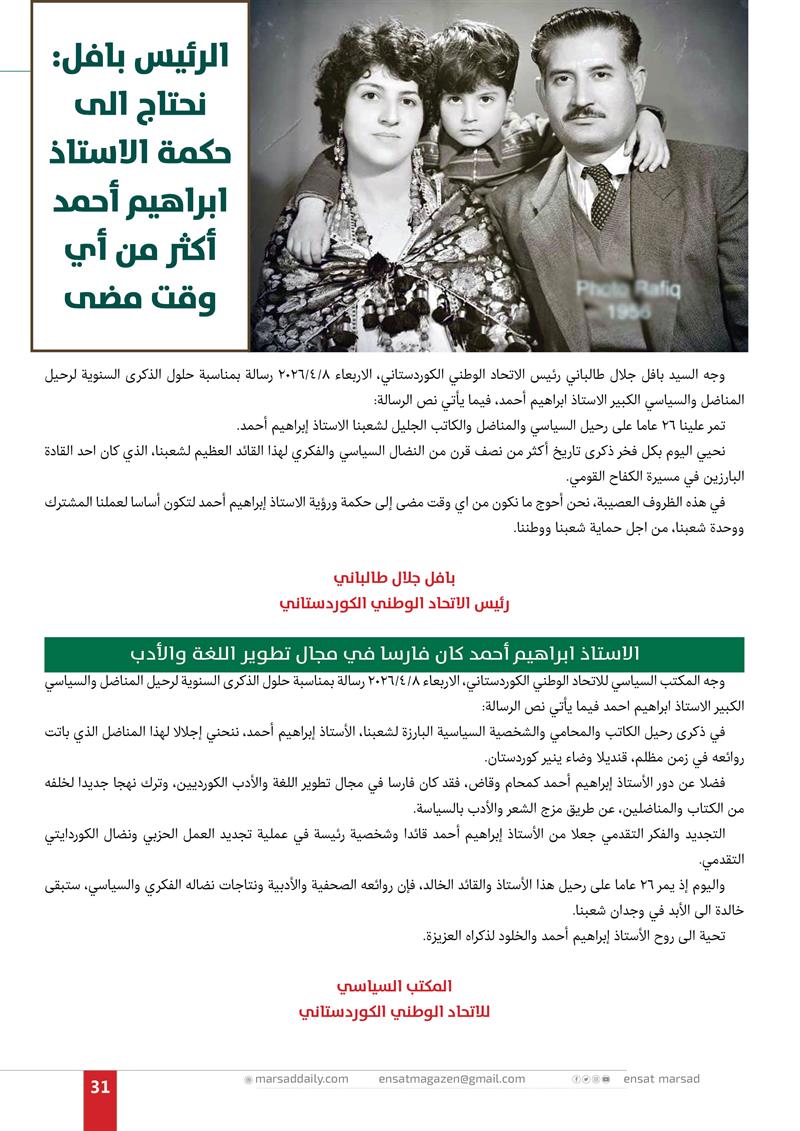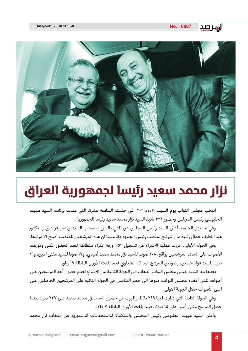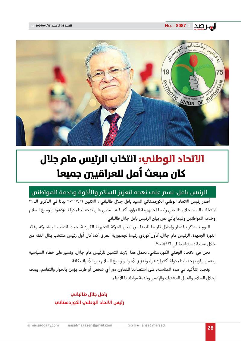 رئيس التحرير : نزار آميدي رئيسا..امتداد لإرث مام جلال