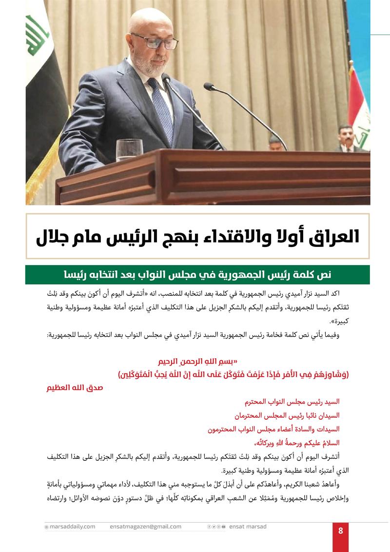 الرئيس الجديد: العراق أولا والاقتداء بنهج الرئيس مام جلال