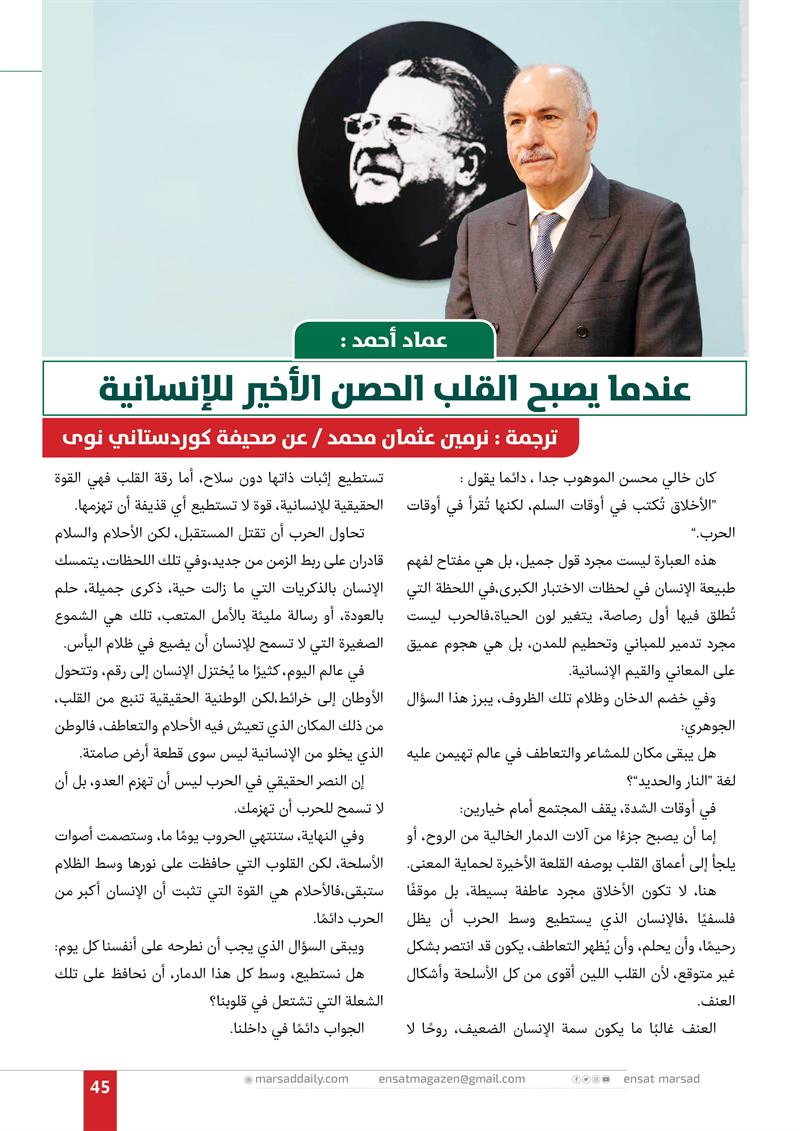 عماد أحمد : عندما يصبح القلب الحصن الأخير للإنسانية