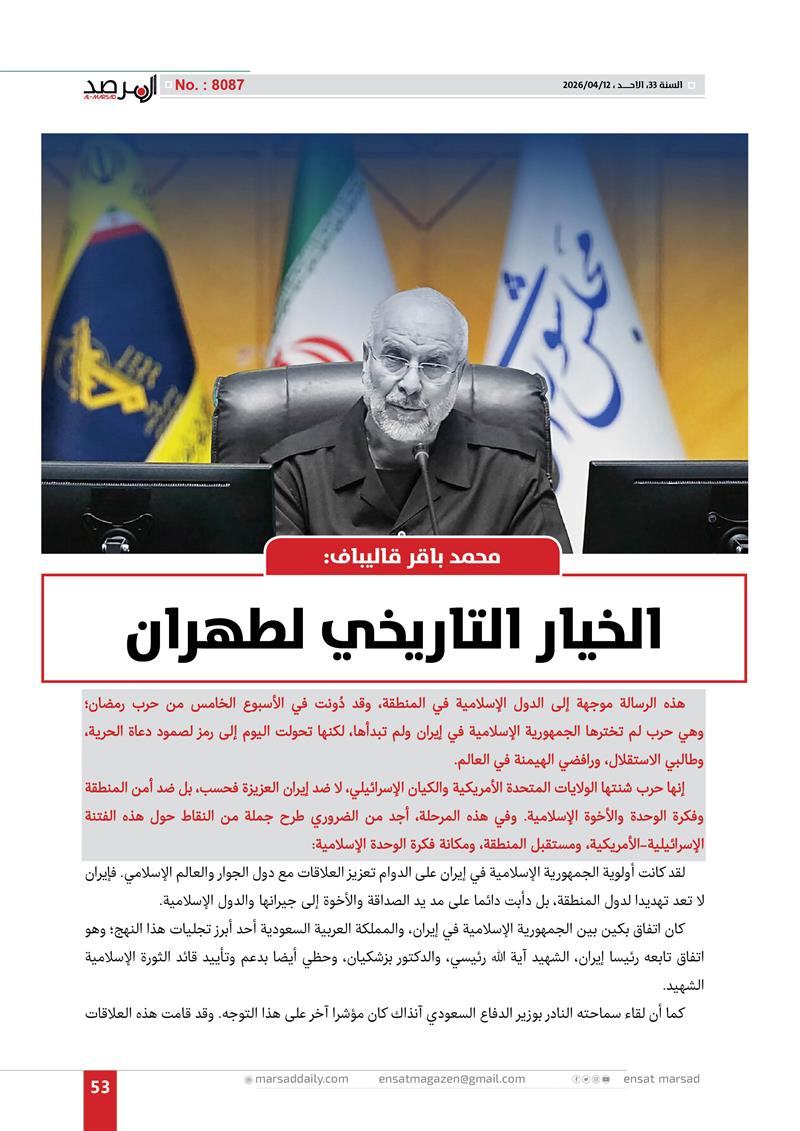محمد باقر قاليباف: الخيار التاريخي لطهران