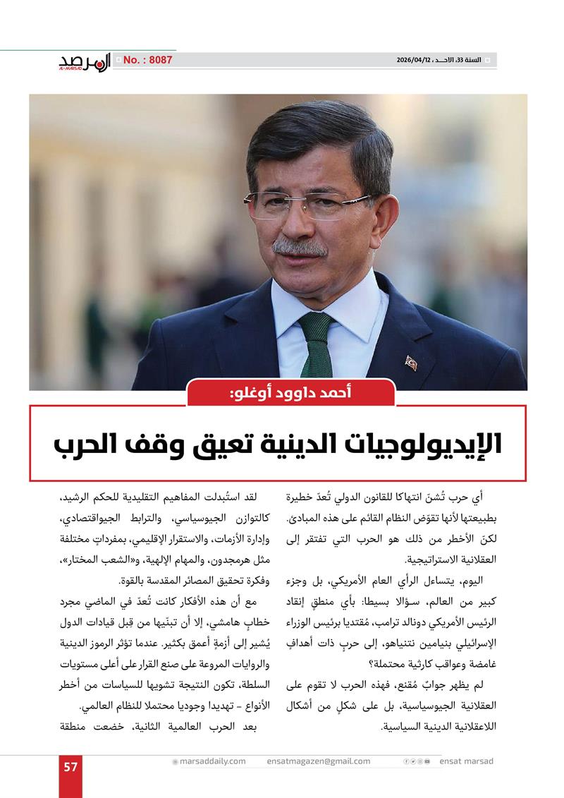 أحمد داوود أوغلو: الإيديولوجيات الدينية تعيق وقف الحرب