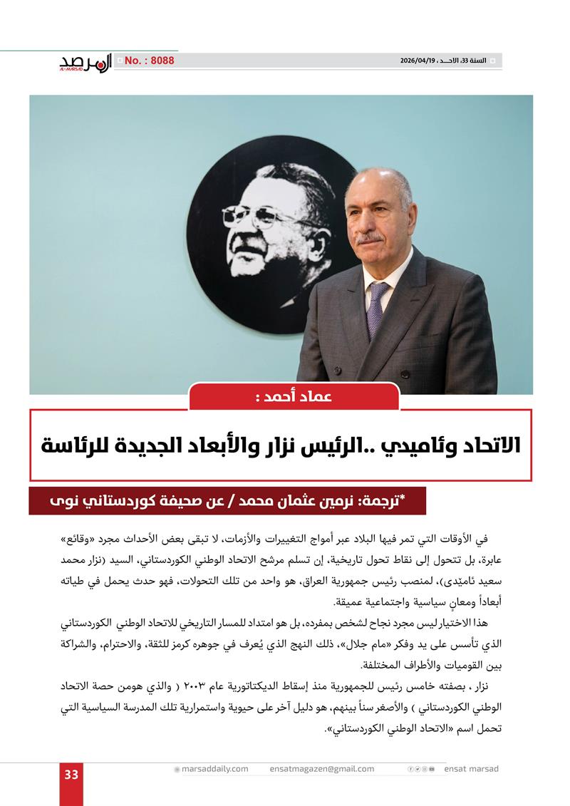 عماد أحمد : الاتحاد وئاميدي ..الرئيس نزار والأبعاد الجديدة للرئاسة