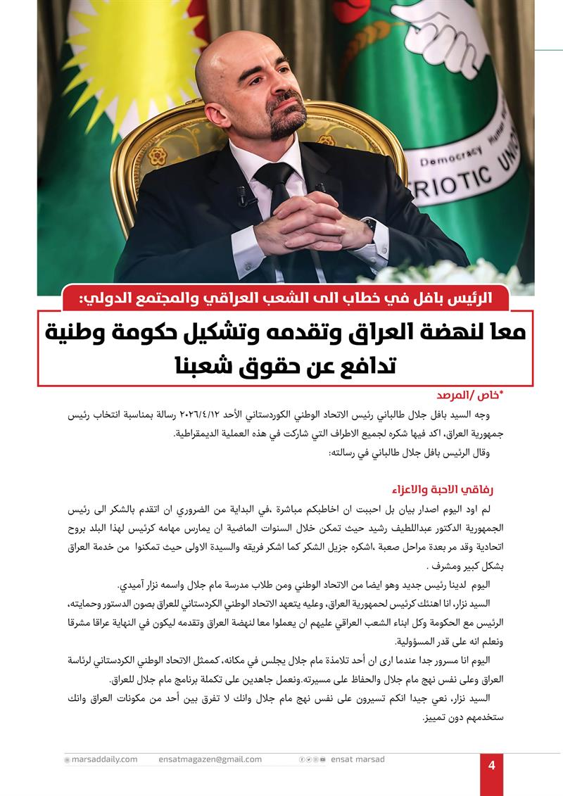 الرئيس بافل : معا لنهضة العراق وتقدمه وتشكيل حكومة وطنية