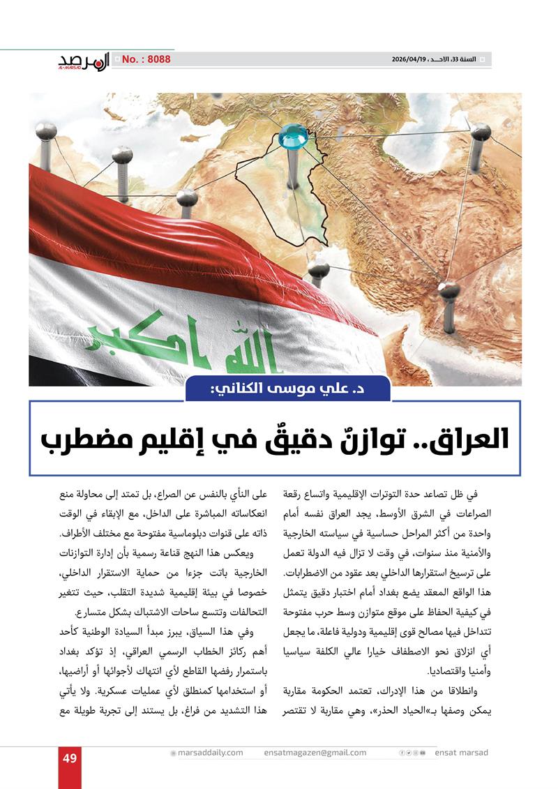 د. علي موسى الكناني: العراق.. توازنٌ دقيقٌ في إقليم مضطرب