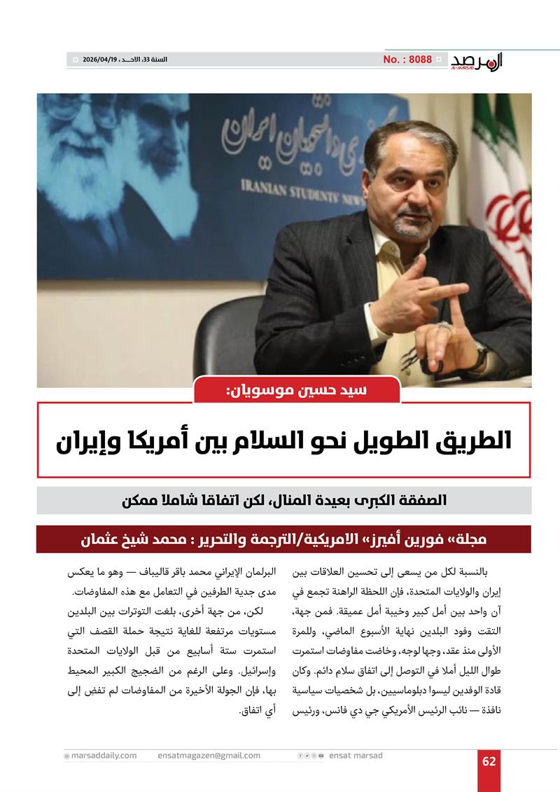 سيد حسين موسويان: الطريق الطويل نحو السلام بين أمريكا وإيران