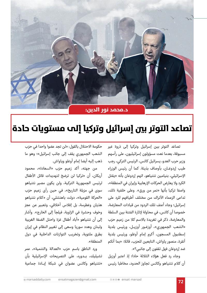 د.محمد نور الدين: تصاعد التوتر بين إسرائيل وتركيا إلى مستويات حادة