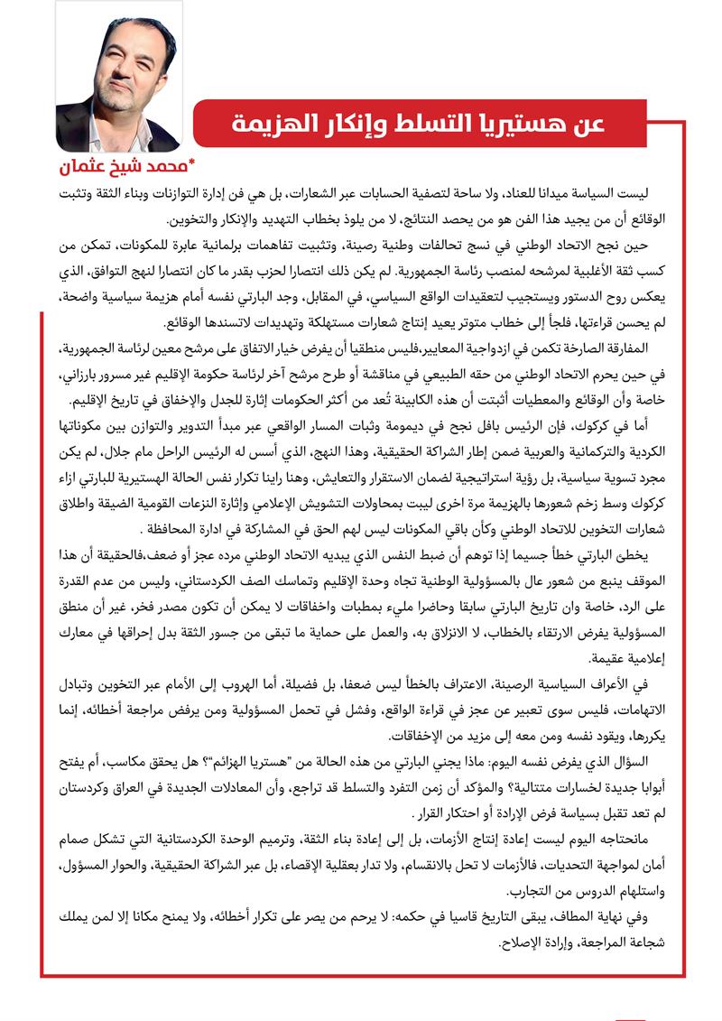 محمد شيخ عثمان : عن هستيريا التسلط وإنكار الهزيمة