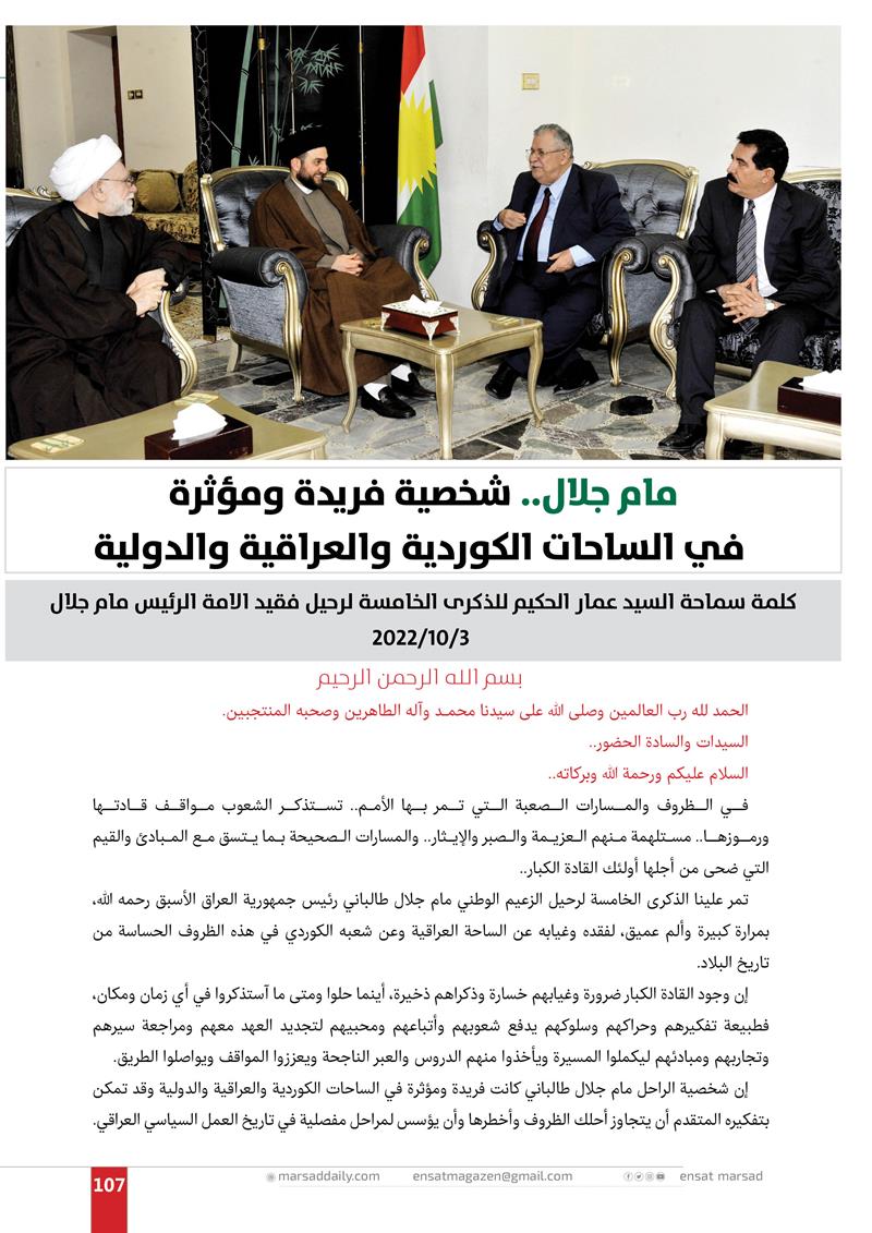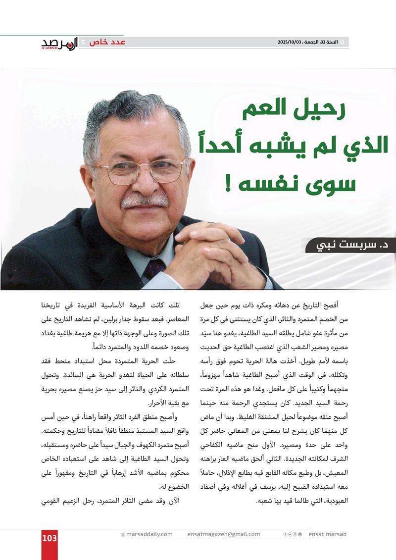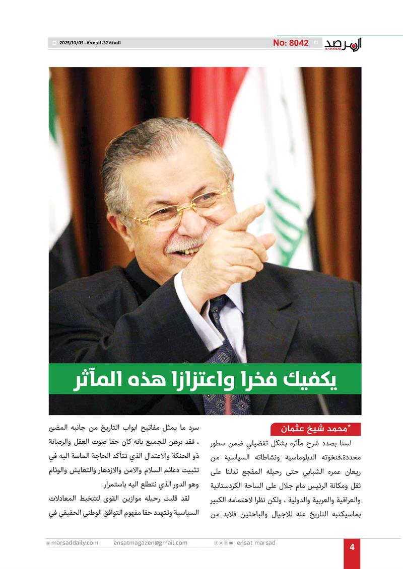 عدد خاص من مجلة المرصد بذكرى رحيل الرئيس مام جلال