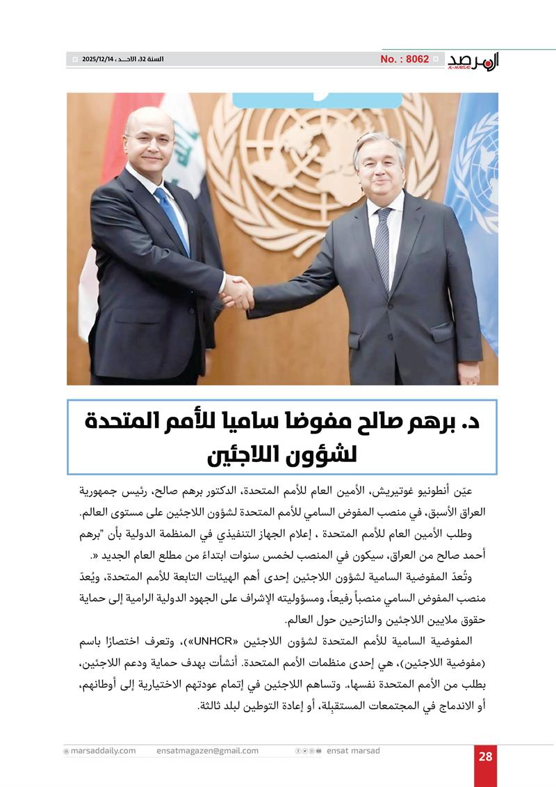 د. برهم صالح مفوضا ساميا للأمم المتحدة لشؤون اللاجئين