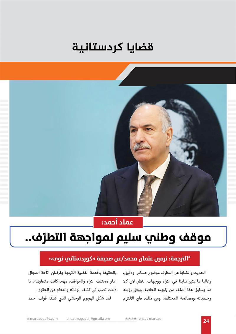 عماد أحمد: موقف وطني سليم لمواجهة التطرّف..