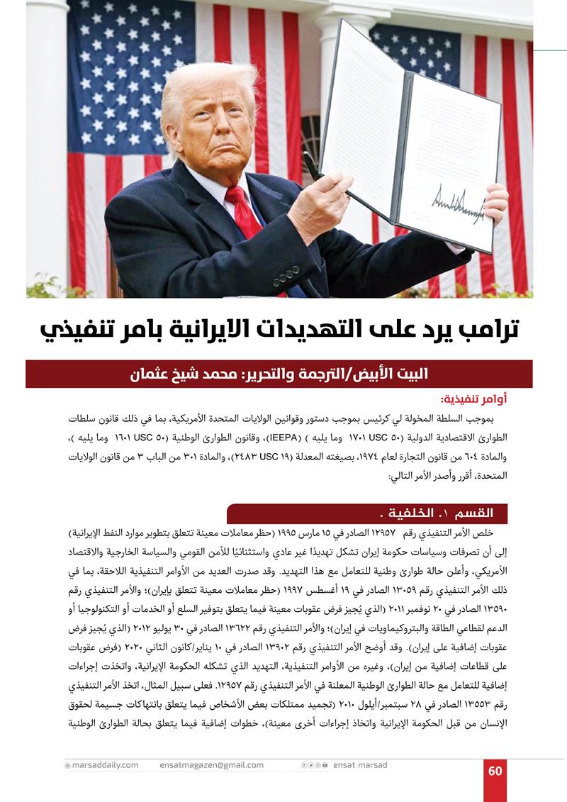 ترامب يرد على التهديدات الايرانية بأمر تنفيذي