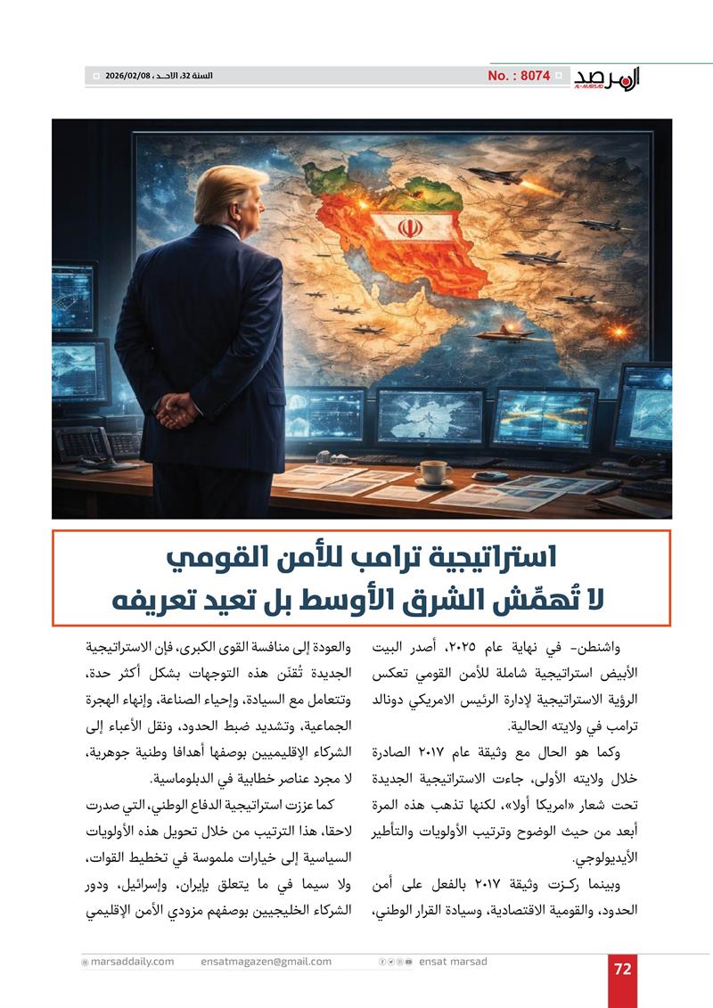 استراتيجية ترامب للأمن القومي لا تهمش الشرق الأوسط بل تعيد تعريفه