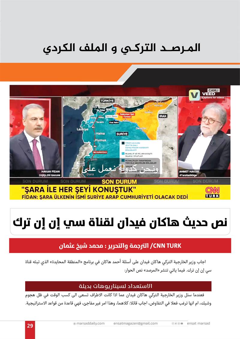 نص حديث هاكان فيدان لقناة سي إن إن ترك