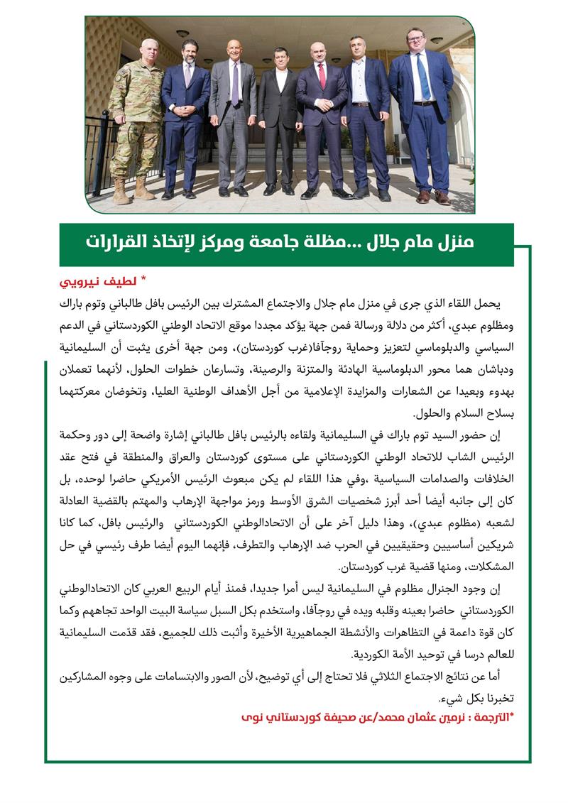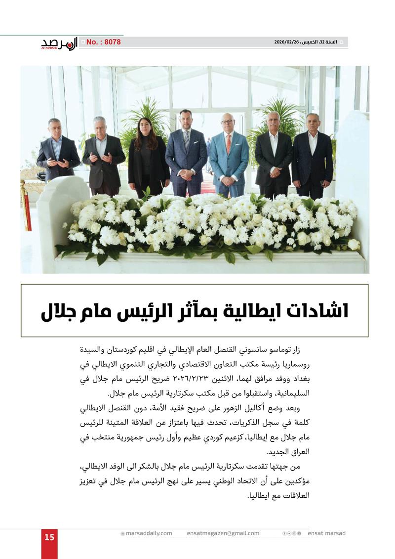 اشادات ايطالية بمآثر الرئيس مام جلال