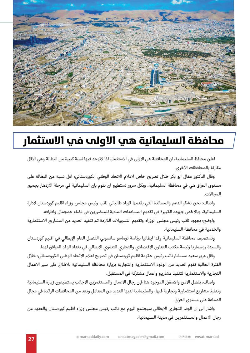محافظة السليمانية هي الاولى في الاستثمار