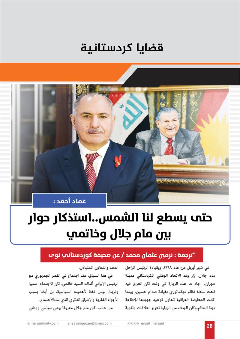 عماد أحمد : حتى يسطع لنا الشمس..استذكار حوار بين مام جلال وخاتمي