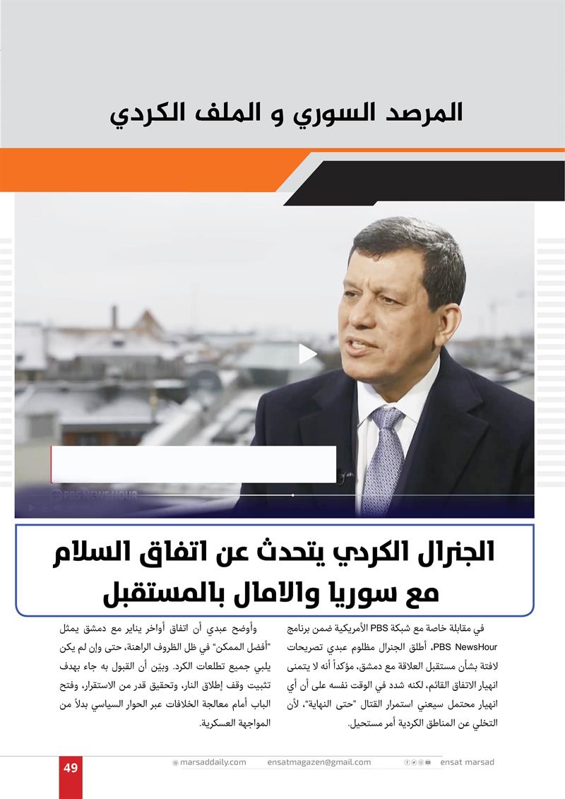 الجنرال الكردي يتحدث عن اتفاق السلام مع سوريا والامال بالمستقبل